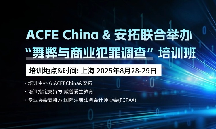 2025年8月28日至29日,由ACFE China与安拓联合主办的首届“舞弊与商业犯罪调查”培训班在上海成功举办。本次培训汇聚了多位行业专家与企业风控实战者,围绕舞弊调查、司法鉴定、财报分析、访谈技巧等核心议题展开分享与交流。