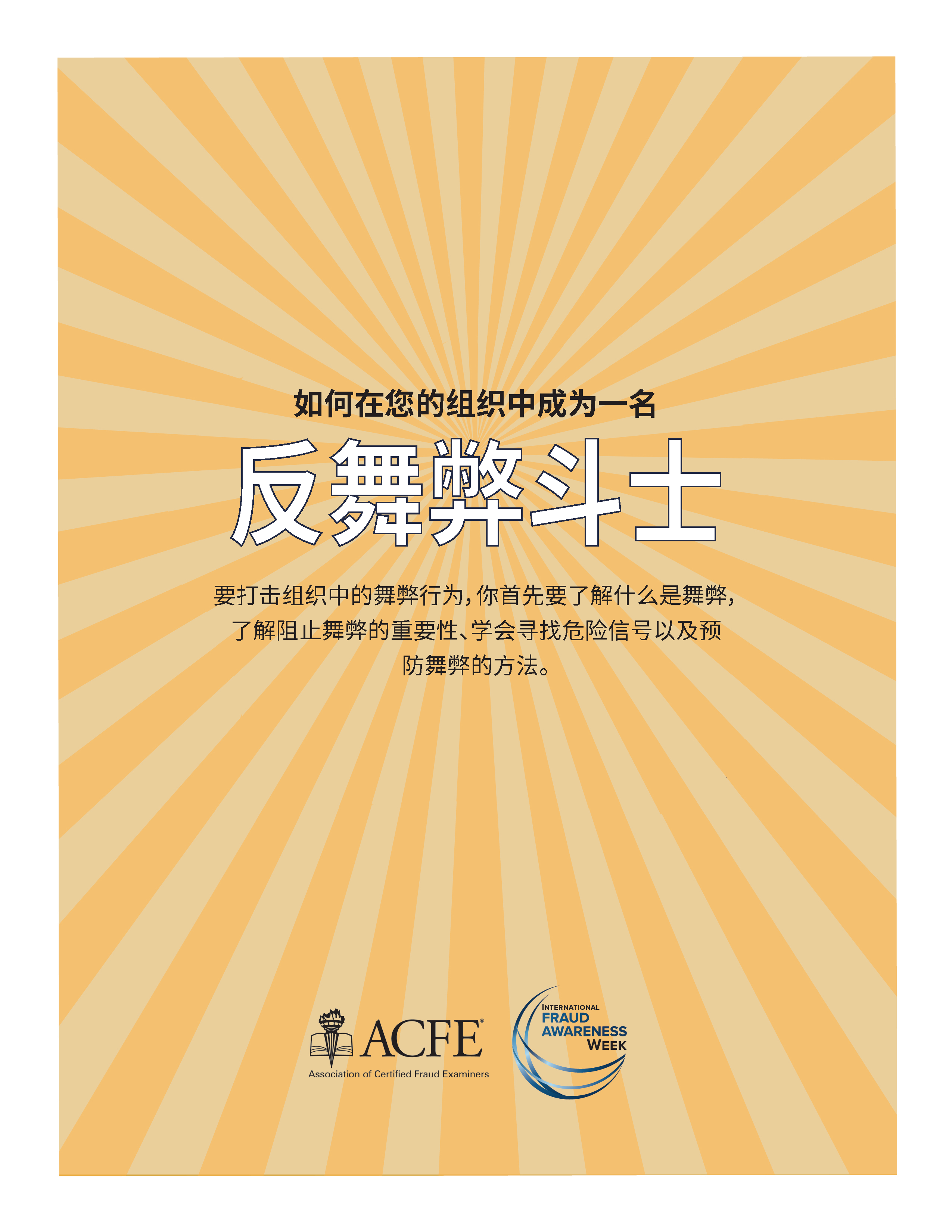 如何在您的组织中成为一名反舞弊者斗士,要打击组织中的舞弊行为,你首先要了解什么是舞弊,了解阻止舞弊的重要性、学会寻找危险信号以及预防舞弊的方法...